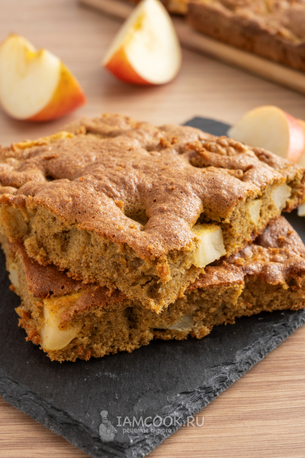 Шарлотка из амарантовой муки готова! Разрежьте её на кусочки и подавайте к чаю или кофе.
