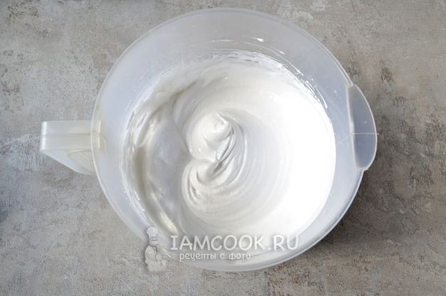 Венчиком взбейте белки с сахаром до пышной упругой пены.