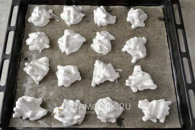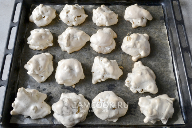 Поставьте в заранее разогретую до 180°С духовку на средний уровень. Затем уменьшите температуру до 130-150°С и подсушивайте баде мезе в течение 30-40 минут. Печенье должно подсохнуть снаружи и не быть сырым внутри.