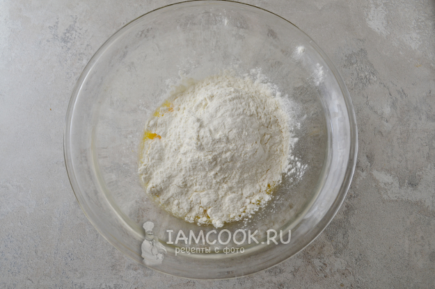 Всыпьте муку с содой.