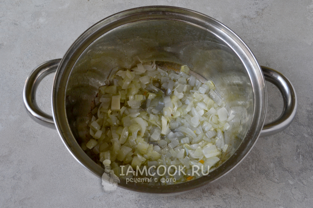 Добавьте к луку морковь. Помешивая, на огне выше среднего обжаривайте овощи 5 минут.