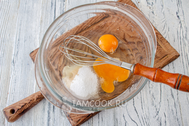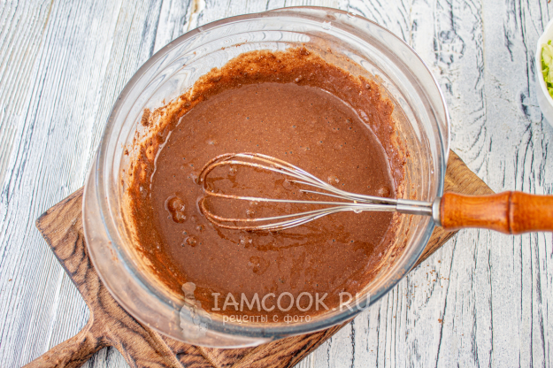 Замесите тесто, чтобы не было комочков. Тесто получается жидким, как на оладьи, но не стоит забивать его мукой.