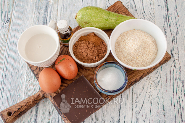 Подготовьте все необходимые ингредиенты для шоколадного пирога брауни из кабачка (ПП).