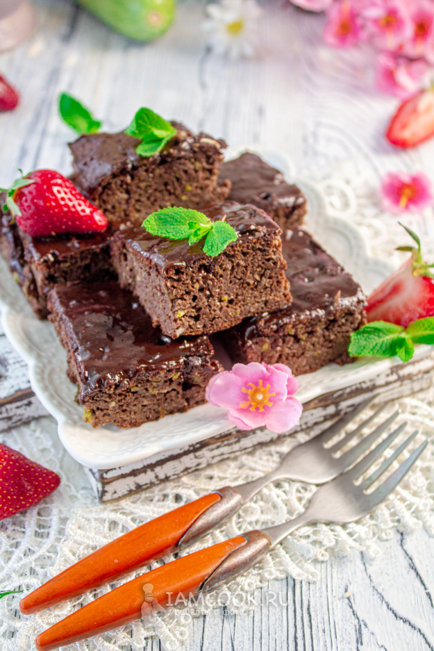 Готовый ПП брауни из кабачка с какао нарежьте на квадратики и подавайте к столу!