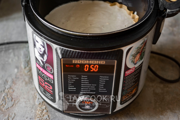 Запустим программу «Выпечка» и выпекаем манник на молоке с вареньем в мультиварке в течение 50 минут.