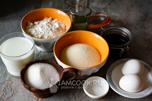 Возьмём необходимые ингредиенты для приготовления манника на молоке с вареньем в мультиварке.
