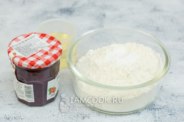 Для приготовления постного печенья с вареньем подготовьте продукты по списку.