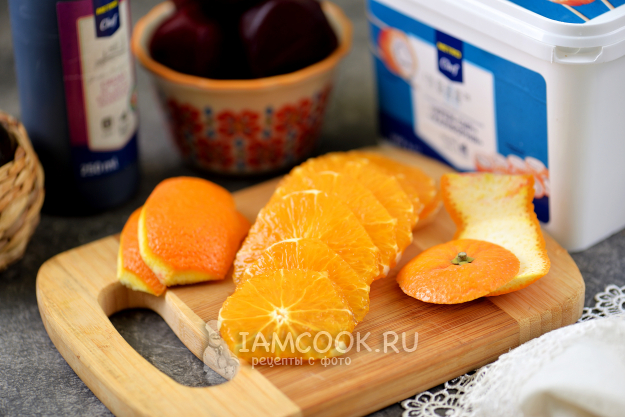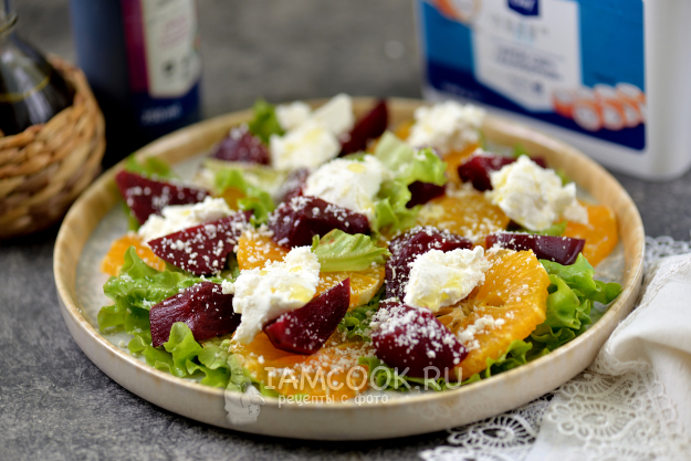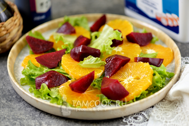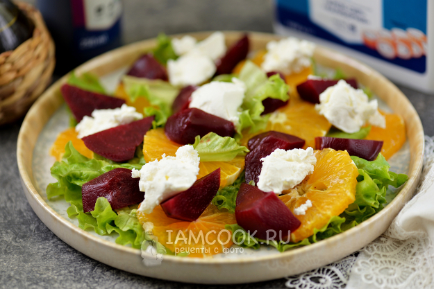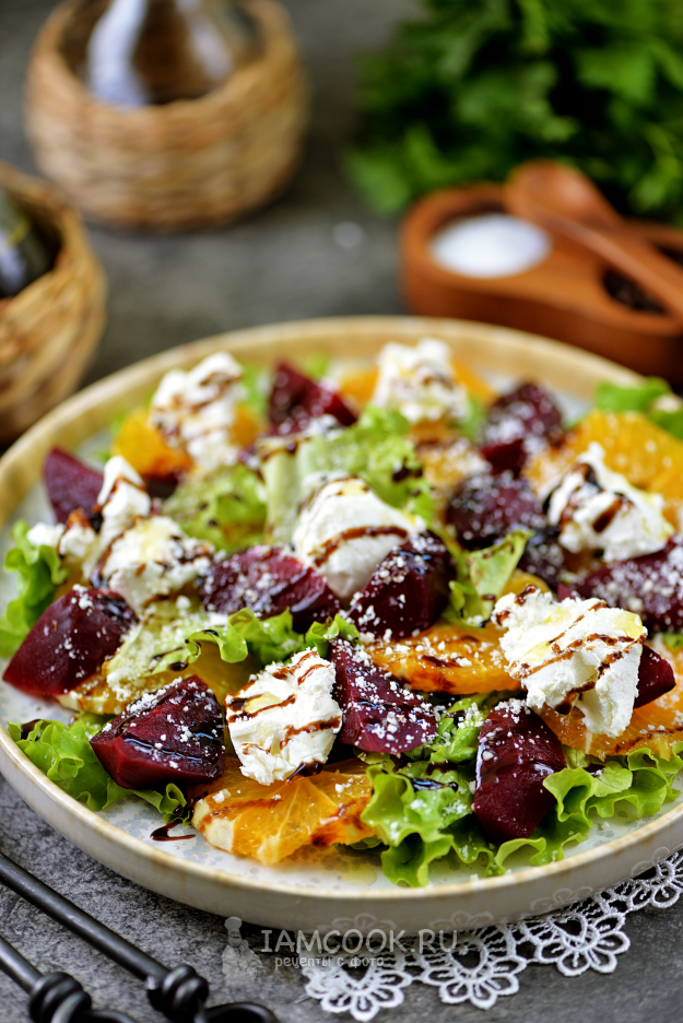 Очень вкусный и полезный салат из свеклы с апельсином и сыром готов.
