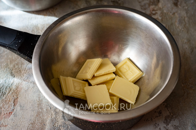 На водяной бане растопим белый шоколад до гладкой однородной массы.