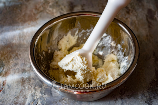 Погружным блендером перебьем эти ингредиенты до получения однородной творожной массы.