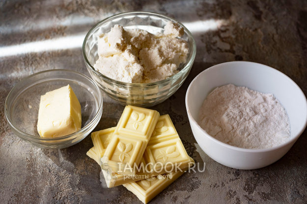 Возьмём необходимые ингредиенты для приготовления глазированных сырков в белом шоколаде.