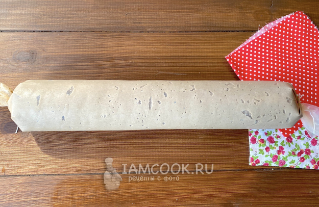 Уберите колбасное изделие в холодильник минимум на 2 часа.
