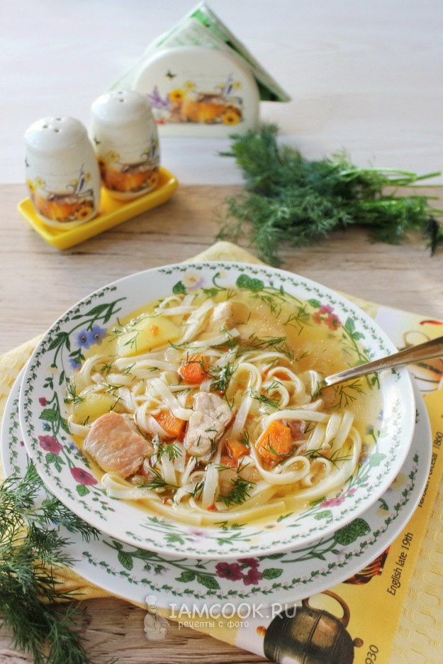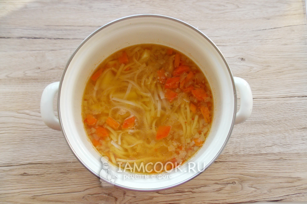 Для приготовления супа с жареной свининой и лапшой возьмите ингредиенты по предложенному списку.