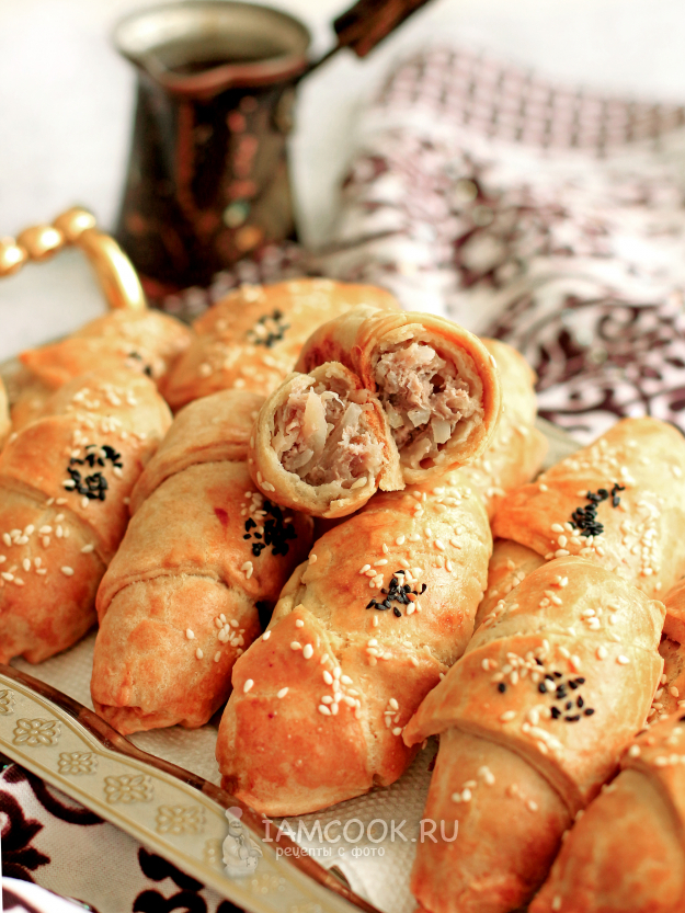 Сразу после духовки турецкая самса плотная и хрустящая, а потом тесто становится очень мягким и рассыпчатым, оно просто тает во рту.