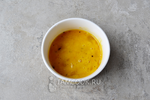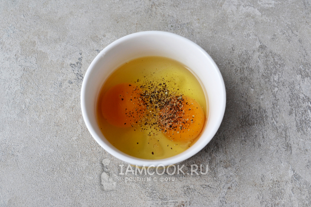 В небольшую миску разбейте яйца, посолите и поперчите.