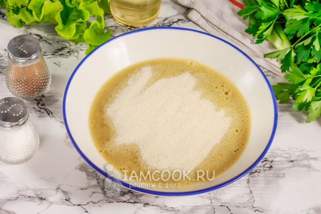 Добавьте манную крупу и перемешайте. Оставьте на 20 минут при комнатной температуре, чтобы манка набухла.