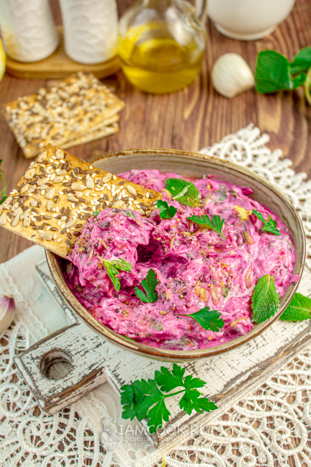 Готовый соус подавайте охлажденным с крекерами или с чем любите. Перед подачей соус Цацики со свеклой полейте небольшим количеством оливкового масла. Приятного аппетита!!!