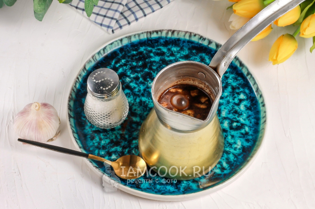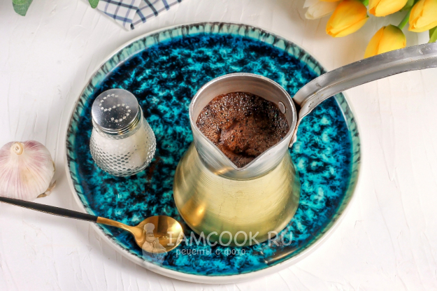 Внимание! Время варки напитка напрямую зависит от воды, залитой в турку. Если заливаете кипяток, то кофе с чесноком будет готов через 1-2 минуты. Если вода холодная, то примерно через 3-5 минут.