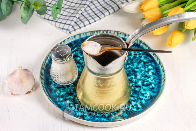 Туда же добавьте и соль. Если есть у вас в наличии морская соль без различных добавок, то она будет наилучшим вариантом.