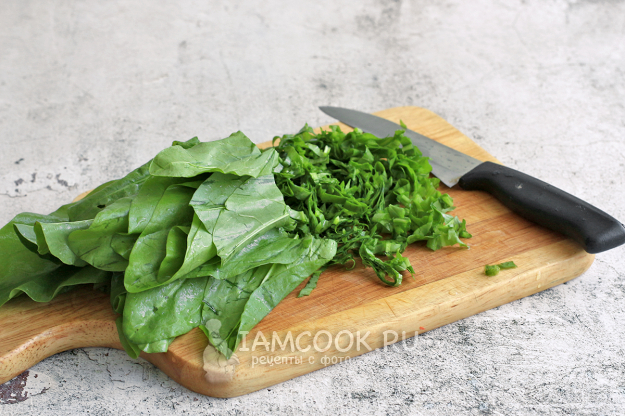 Листья щавеля нарежьте, как вы обычно режете для зеленого борща. Я нарезаю помельче, чтобы потом крупные "лапти" не плавали в тарелке.