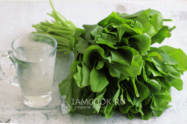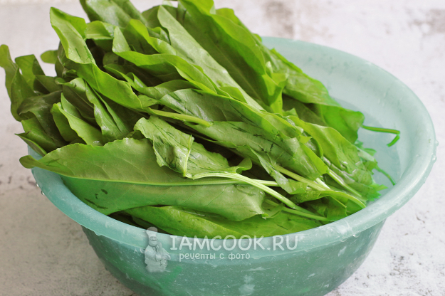 Щавель тщательно промойте в большом количестве воды. Для этого поместите его в широкую емкость и залейте водой, удаляя грубые черенки. Несколько раз смените воду.