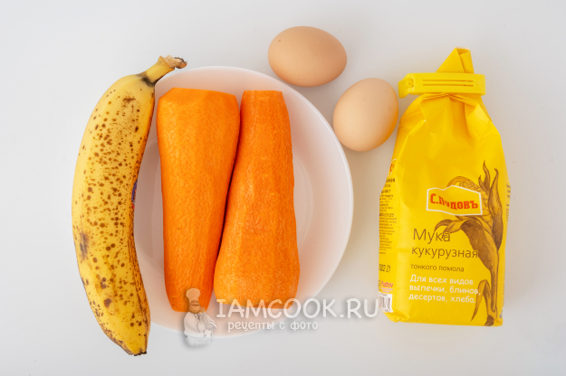 Для приготовления диетической морковной запеканки (ПП) понадобятся следующие продукты. Морковь у меня крупная. Если у вас она не крупная, то ориентируйтесь по весу. Нам нужно будет 400 г моркови. А банан лучше всего брать спелый.