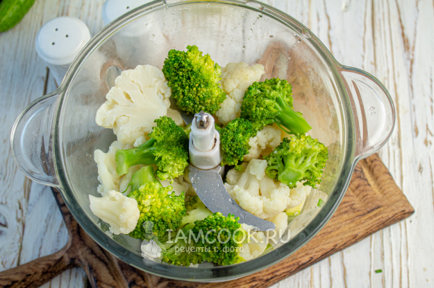 В ковшике вскипятите 1,5 литра воды, опустите оба вида капусты в кипящую подсоленную воду и варите 5-7 минут. Затем откиньте капусту на сито, чтобы стекла вся лишняя жидкость.
