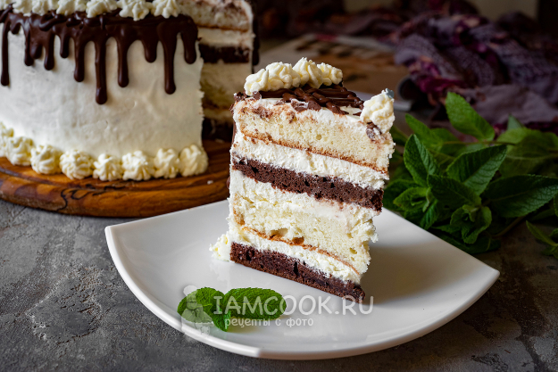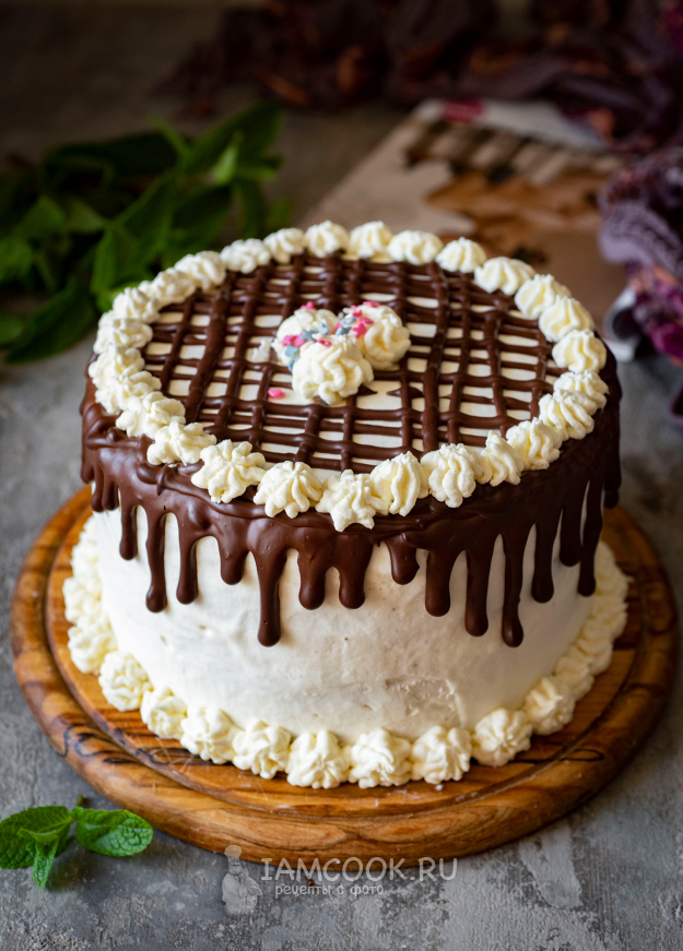 Шоколадно-ванильный торт с кремом чиз (или крем-чизом) готов. Подаем к столу. Приятного аппетита!