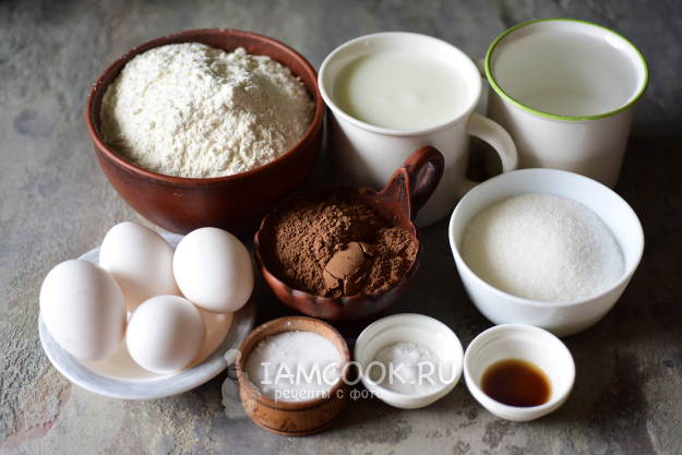 Подготовим ингредиенты для двух бисквитов - шоколадного и ванильного.