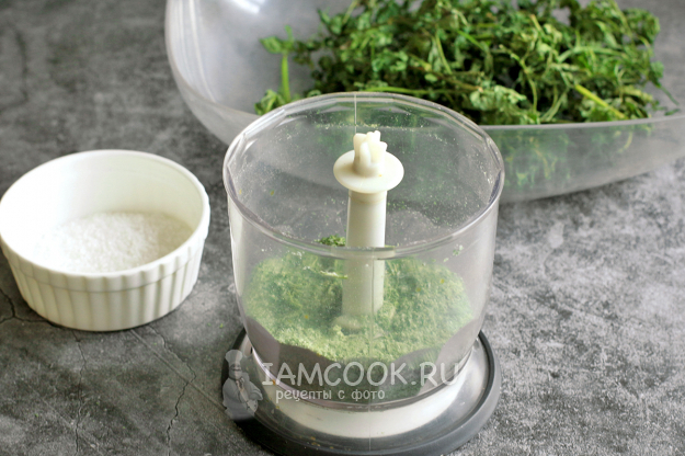Также можно использовать кофемолку или мощный стационарный измельчитель. В чашу блендера насыпьте немного крупной соли и положите часть сухого сельдерея. Измельчайте всё небольшими порциями до получения мелкой душистой фракции. Всегда добавляйте соль к сухому сырью.