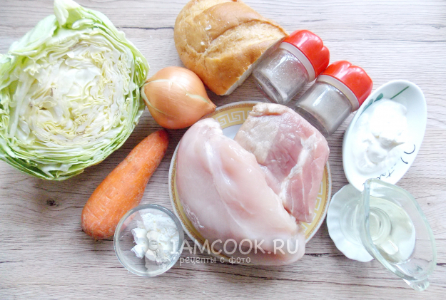 Для приготовления ленивых голубцов с молодой капустой возьмите все ингредиенты по списку.