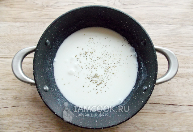 Перемешайте муку со сметаной, чтобы не было комочков. Налейте 250-300 мл воды. Посолите, поперчите и перемешайте соус. Можно добавить любые сухие приправы.