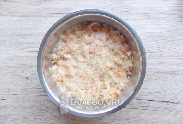 Затем добавьте в миску с фаршем. Посолите и поперчите.