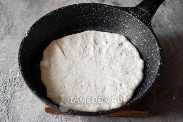 Сухую сковороду разогреем и выложим на неё подготовленную заготовку лепешки, обжарим с двух сторон на среднем огне до появления характерных золотистых, зажаристых кружочков.