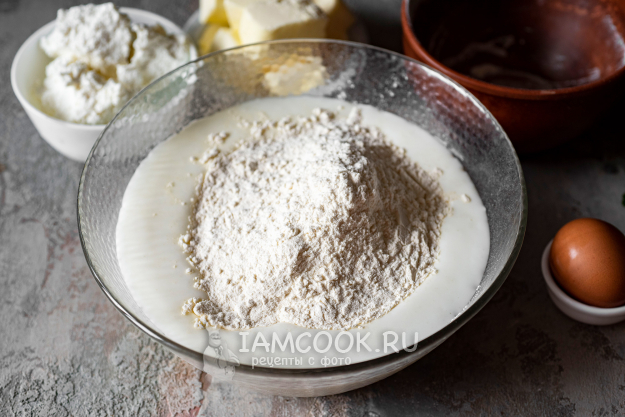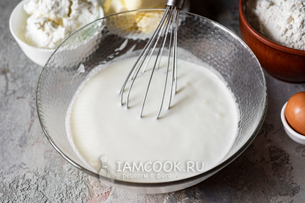 В миску зальем кефир, добавим соль и соду. Перемешаем.
