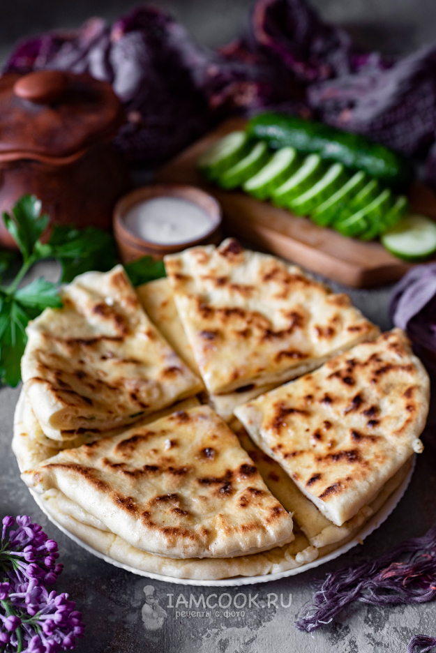 Каждую готовую лепешку будем обильно поливать растопленным сливочным маслом и класть в стопочку. К столу ингушские лепешки чапильг подаём горячими, можно каждую лепешку разрезать на 4 части. Приятного аппетита!