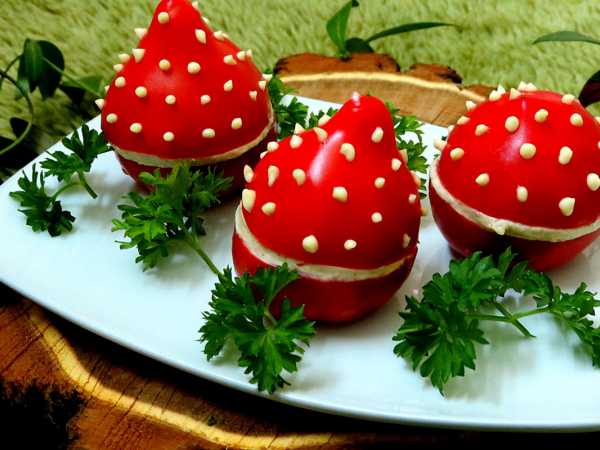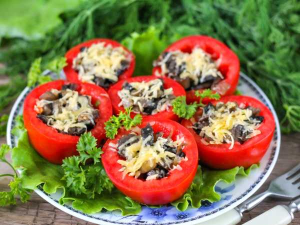 Подготовленные помидоры наполните салатом и готово! Закуску из помидоров, фаршированных салатом, можно сразу подавать на стол! Приятного аппетита!!!