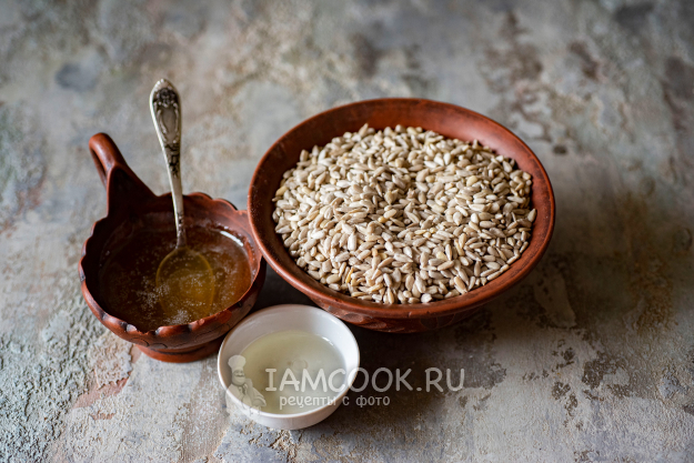 Подготовим необходимые ингредиенты для халвы из семечек с мёдом.