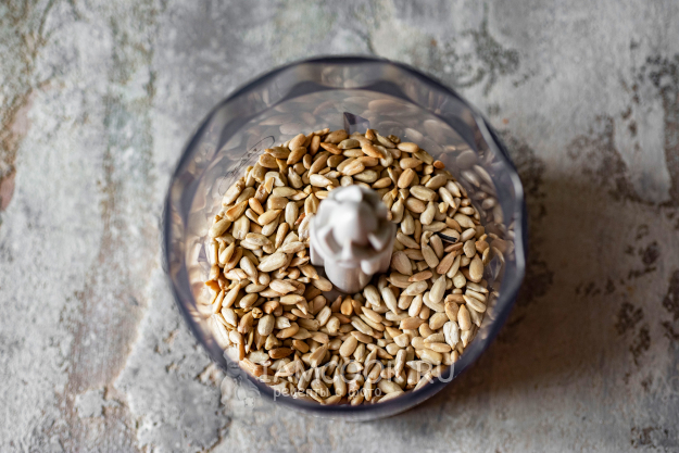 Охлажденные семечки выложим в чашу стационарного блендера.