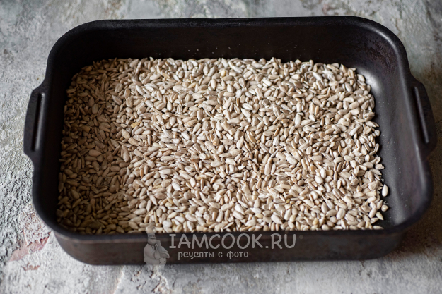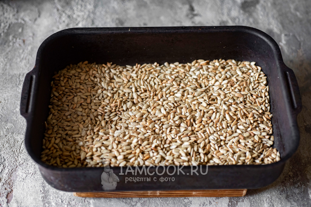 Семечки все высыплем на противень и поставим в духовку.
