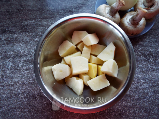 Картофель нарезать некрупными кубиками.