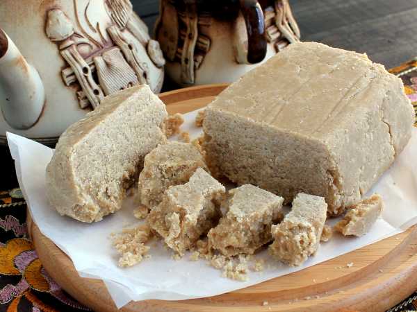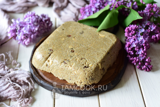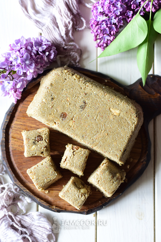 Затем пласт готовой ПП халвы без сахара и муки выложим на горизонтальную поверхность.