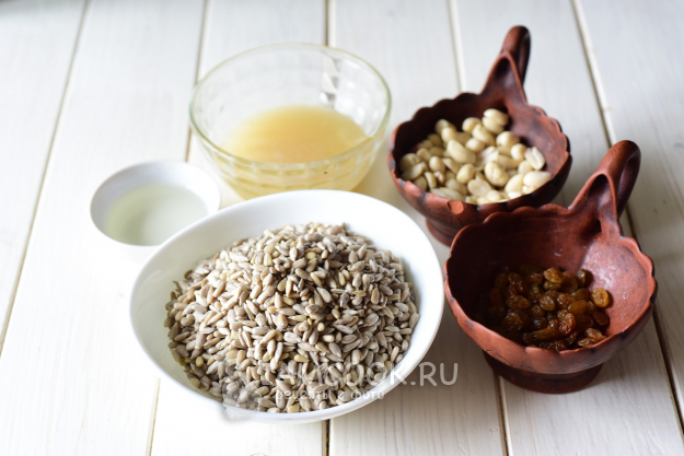 Возьмём необходимые ингредиенты для приготовления ПП халвы без сахара и муки в домашних условиях. Изюм промоем и просушим на салфетках.