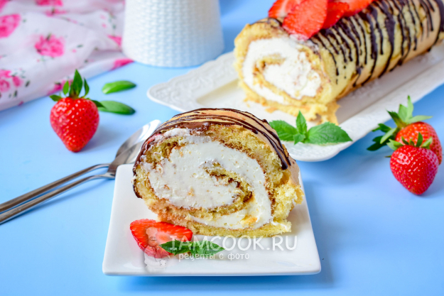 Для приготовления бисквитного рулета с маскарпоне и сливками подготовьте необходимые ингредиенты по списку.