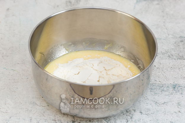 Затем добавьте муку, смешанную с разрыхлителем.