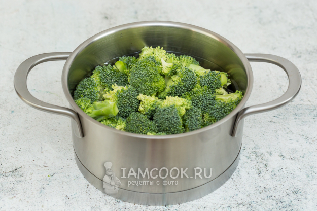 Брокколи разберите на соцветия и отварите в подсоленной воде 30-40 секунд с момента закипания.