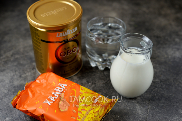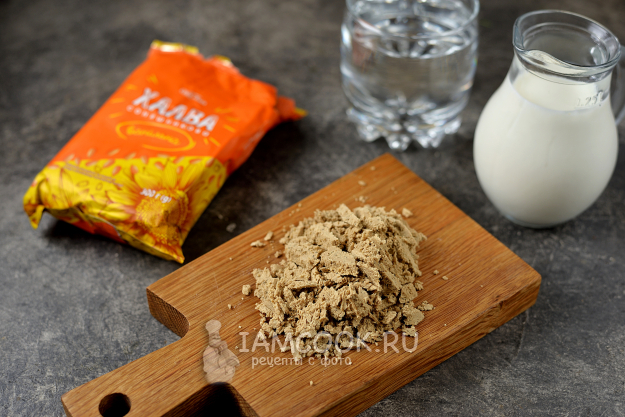 Для приготовления кофе латте с халвой вам понадобятся все ингредиенты на фото.