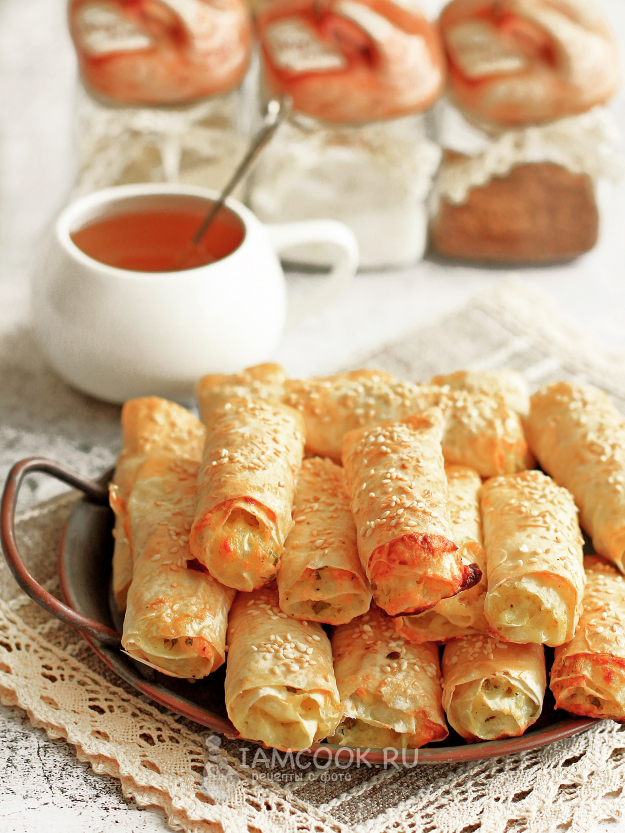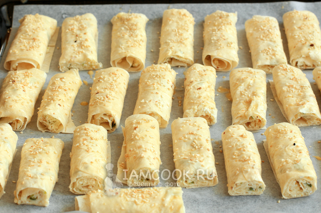 Трубочки из лаваша с творогом и сыром готовы. Внутри они мягкие, а сверху - хрустящие. После остывания становятся плотнее.