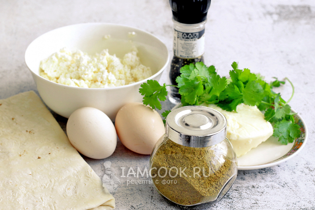 Для приготовления трубочек из лаваша с творогом и сыром нам потребуются все перечисленные в списке ингредиенты. Вы можете сами решить, какие специи вам добавлять и какую зелень. Сыр предпочтительнее взять рассольный, типа сулугуни или моцареллы, которые хорошо плавятся, но сгодится любой.