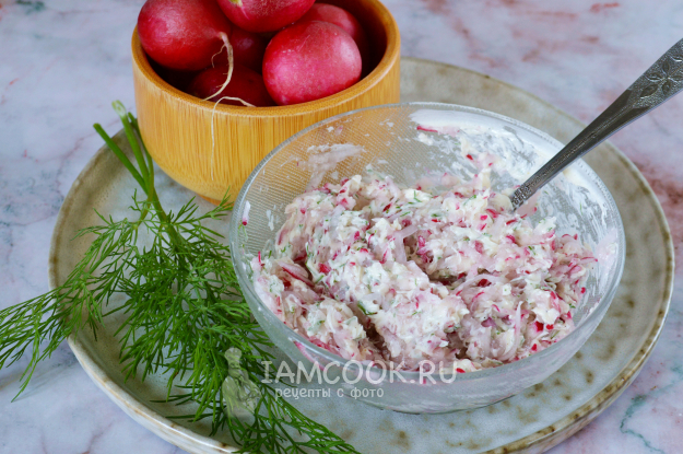 Соединить редис, измельченный укроп и мягкое масло, посолить и поперчить.